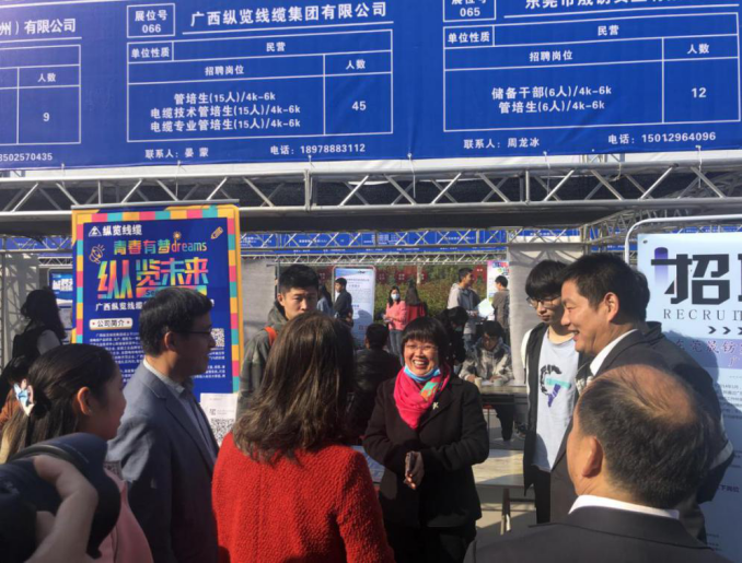 “問渠哪得清如許,為有源頭活水來”,一個(gè)公司要發(fā)展壯大、團(tuán)隊(duì)要保持活力就要不斷地注入新鮮血液。10月24日,由縱覽集團(tuán)總裁助理兼人力行政總監(jiān)張彩菊女士帶隊(duì)的校園招聘領(lǐng)導(dǎo)小組不遠(yuǎn)千里,來到“電線電纜行業(yè)人才培養(yǎng)的搖籃”——河南工學(xué)院,招攬人才,為縱覽人才儲(chǔ)備添磚加瓦。 張彩菊總監(jiān)在招聘會(huì)上與同學(xué)們進(jìn)行交流 本次招聘會(huì)主要針對(duì)河南工學(xué)院電線電纜及相關(guān)專業(yè)的同學(xué)。招聘會(huì)上,張彩菊總監(jiān)耐心地一一解答同學(xué)們對(duì)意向職位的疑問,并與其溝通了解他們的就業(yè)心態(tài)和想法,幫助他們走好職業(yè)生涯的第一步。“畢業(yè)不是人生的終點(diǎn)而是新的起點(diǎn),趁著年輕,多吃苦,多歷練!”張總鼓勵(lì)著每一位同學(xué),希望他們都能在新的起點(diǎn),熱血出發(fā)。 河南工學(xué)院副校長劉莉莉親臨招聘會(huì)現(xiàn)場與張總進(jìn)行了親切交流,了解企業(yè)招聘計(jì)劃、發(fā)展前景,并認(rèn)真聽取了人才培養(yǎng)的意見和建議。 河南工學(xué)院副校長劉莉莉與張總進(jìn)行親切交流 宣講會(huì)現(xiàn)場 人才,隸屬于縱覽線纜集團(tuán)兩線管理——產(chǎn)品生產(chǎn)線、人才生產(chǎn)線之一。為更好地搭建縱覽集團(tuán)人才培養(yǎng)的搖籃,集團(tuán)先后與各大高校建立校企合作關(guān)系,為日后進(jìn)一步開展多層次,多形式,多領(lǐng)域的合作奠定了基礎(chǔ)。同時(shí),校企合作也為企業(yè)人才儲(chǔ)備提供了良好的平臺(tái)??v覽線纜集團(tuán)一直致力于人才搖籃的搭建與人才孵化,“星星之火,走進(jìn)高校,星火相傳、生生不息!