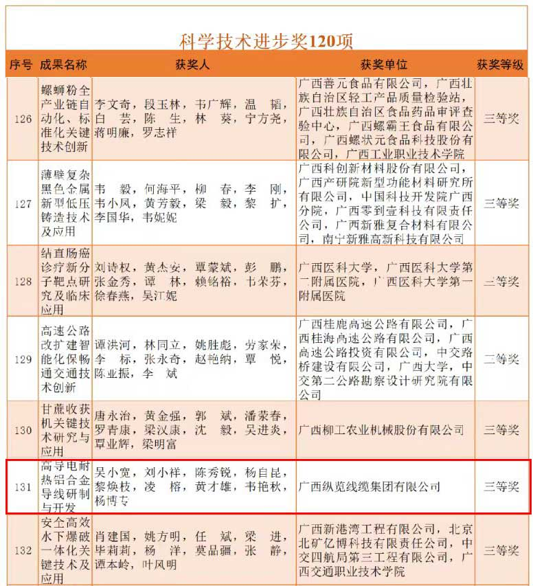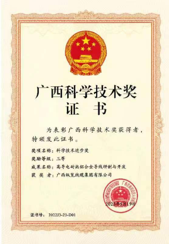 近日,2023年廣西科學(xué)技術(shù)獎(jiǎng)勵(lì)大會(huì)在南寧隆重舉行,會(huì)議表彰了獲得2022年度廣西科學(xué)技術(shù)獎(jiǎng)獲獎(jiǎng)單位和人員。自治區(qū)黨委書記、自治區(qū)人大常委會(huì)主任劉寧出席大會(huì),自治區(qū)黨委副書記、自治區(qū)主席藍(lán)天立在會(huì)上講話,并共同為獲獎(jiǎng)代表頒獎(jiǎng)。 我集團(tuán)研發(fā)團(tuán)隊(duì)科研成果《高導(dǎo)電耐熱鋁合金導(dǎo)線研制與開發(fā)》項(xiàng)目榮獲2022年度廣西科學(xué)技術(shù)進(jìn)步獎(jiǎng)三等獎(jiǎng)。 本項(xiàng)目發(fā)明的高導(dǎo)電耐熱鋁合金導(dǎo)線制備技術(shù),解決了長(zhǎng)期以來(lái)困擾國(guó)內(nèi)線纜制造企業(yè)該產(chǎn)品導(dǎo)電性能不穩(wěn)定、原材料品位純度要求高,生產(chǎn)效率低,難以批量生產(chǎn)的問(wèn)題。為國(guó)家電網(wǎng)和南方電網(wǎng)等電網(wǎng)公司高壓、超高壓輸電線路工程高導(dǎo)電耐熱鋁合金導(dǎo)線制備,提供了技術(shù)和生產(chǎn)保障。滿足了電力建設(shè)工程對(duì)輸電線路架空導(dǎo)線長(zhǎng)距離、大跨越、大傳輸容量、高導(dǎo)電率的技術(shù)要求。 這是縱覽線纜集團(tuán)近年來(lái)高度重視科研投入、加大力氣推進(jìn)創(chuàng)新工作的縮影,也是我集團(tuán)深入貫徹實(shí)施創(chuàng)新驅(qū)動(dòng)發(fā)展戰(zhàn)略,聚焦產(chǎn)業(yè)鏈深度融合,推動(dòng)產(chǎn)品優(yōu)化升級(jí),大力加強(qiáng)高質(zhì)量發(fā)展的重要成果。 下一步,縱覽線纜集團(tuán)將不忘初心,做創(chuàng)新驅(qū)動(dòng)發(fā)展排頭兵,為壯美廣西經(jīng)濟(jì)建設(shè)貢獻(xiàn)縱覽力量。 |