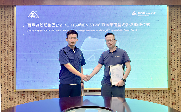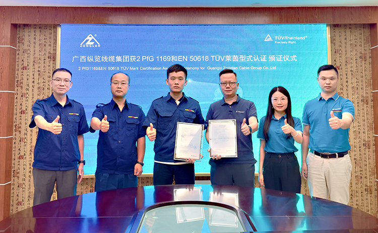 9月10日,德國TüV萊茵型式認(rèn)證頒證儀式在廣西縱覽線纜集團(tuán)舉行。國際獨(dú)立第三方檢測、檢驗(yàn)和認(rèn)證機(jī)構(gòu)德國TüV萊茵大中華區(qū)(以下簡稱“TüV萊茵”)為縱覽線纜集團(tuán)頒發(fā)“2PfG 1169及歐盟EN 50618”等兩項(xiàng)光伏產(chǎn)品認(rèn)證證書。TüV萊茵商用與工業(yè)產(chǎn)品服務(wù)部經(jīng)理武藝、廣西縱覽集團(tuán)常務(wù)副總經(jīng)理陳思源等出席頒證儀式。 武藝一行參觀了縱覽集團(tuán)MES自動化控制中心、榮譽(yù)展廳,了解縱覽集團(tuán)的生產(chǎn)過程管控、產(chǎn)品質(zhì)量控制、企業(yè)發(fā)展成就。陳思源對武藝一行的來訪表示歡迎,并介紹了縱覽集團(tuán)發(fā)展歷程,縱覽集團(tuán)響應(yīng)國家“雙碳”戰(zhàn)略目標(biāo),緊抓新能源市場發(fā)展機(jī)遇,成功開發(fā)光伏線纜系列產(chǎn)品,并取得TüV萊茵認(rèn)證,這不僅提升了公司光伏產(chǎn)品的市場競爭力,也對公司深耕新能源市場奠定了堅(jiān)實(shí)的基礎(chǔ),公司今后將繼續(xù)圍繞光伏、風(fēng)電、儲能、新能源汽車等電纜產(chǎn)品持續(xù)深耕。武藝向陳思源介紹了TüV萊茵公司的發(fā)展歷程,TüV萊茵作為全球領(lǐng)先的第三方檢測、認(rèn)證和技術(shù)服務(wù)提供商,涉及到認(rèn)證、服務(wù)、檢測、環(huán)境保護(hù)、食品安全等眾多領(lǐng)域。 陳思源表示,縱覽集團(tuán)成立二十年來,始終專注于生產(chǎn)優(yōu)質(zhì)產(chǎn)品,不產(chǎn)低劣產(chǎn)品、不做低端客戶、不爭低端市場。公司堅(jiān)持“服務(wù)電網(wǎng),走進(jìn)萬家”,服務(wù)高端用戶,是國家綠色工廠、國家高新技術(shù)企業(yè)、國家知識產(chǎn)權(quán)優(yōu)勢企業(yè)、中國機(jī)械500強(qiáng)、廣西電線電纜行業(yè)龍頭企業(yè)、廣西民營企業(yè)百強(qiáng)企業(yè),先后榮獲自治區(qū)主席質(zhì)量獎提名獎、南寧市市長質(zhì)量獎,而此次TüV萊茵認(rèn)證促使廣西縱覽集團(tuán)實(shí)現(xiàn)了與國際標(biāo)準(zhǔn)的全面接軌。 雙方還圍繞后期認(rèn)證服務(wù)、技術(shù)交流進(jìn)行了深入的探討,雙方并對后期合作方向進(jìn)行了廣泛的交流。
